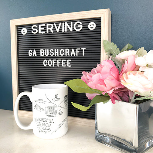 Designed by local artist, Natty Michelle, these mugs showcase her incredible artwork of all the beloved landmarks in Oconee County.